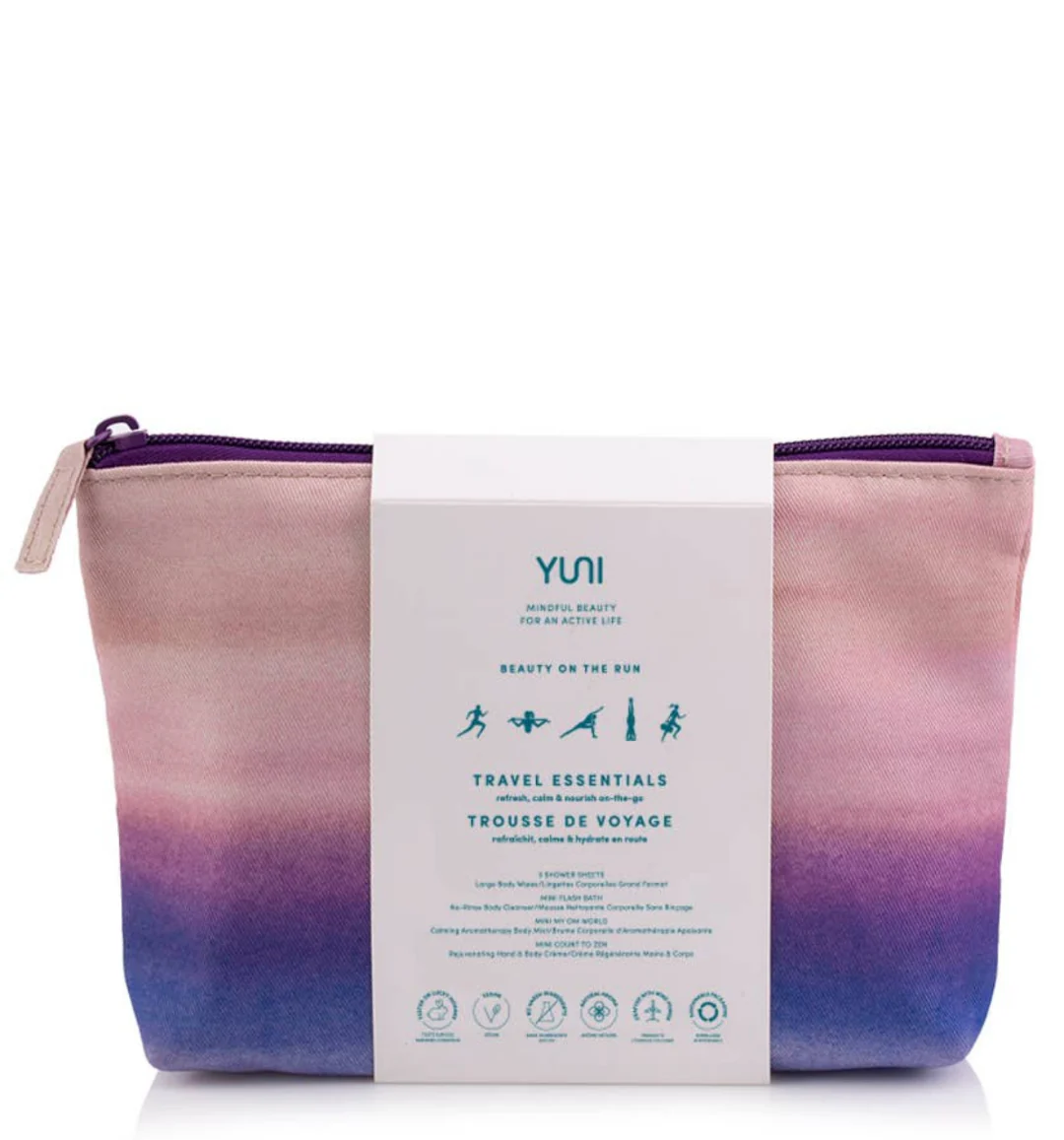 A set of natural, healthy travel essentials to refresh, calm and hydrate on the go. Each sustainably-sourced cotton bag contains four of YUNI’s best products.
