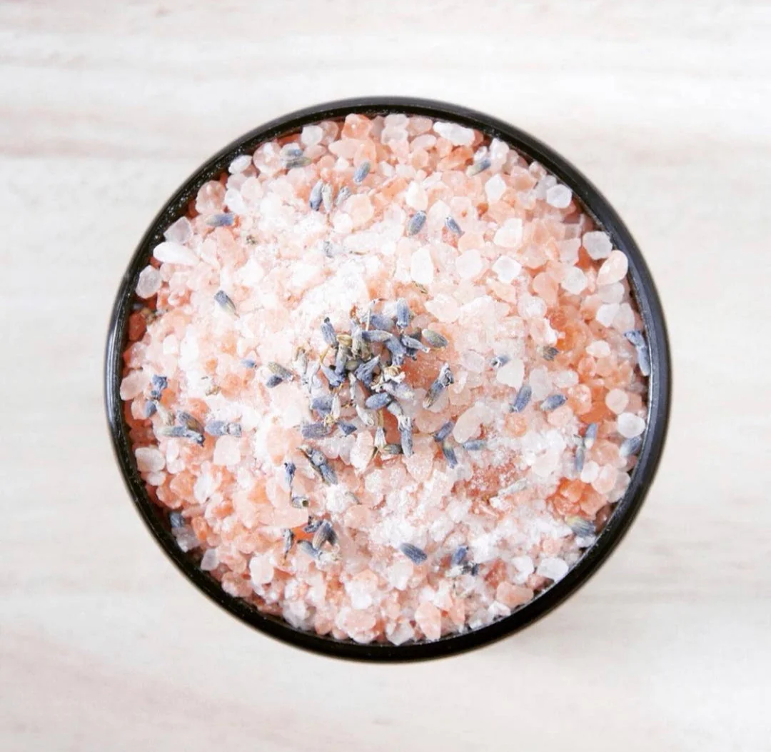 Ingredients: Pink sea salt (Medium), Pink sea salt (Extra Fine) , Lavender EO, Dried Lavender, Cornflower Petals